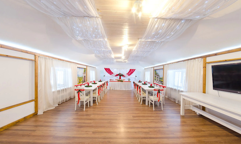 На территории комплекса несколько банкетных залов, отель, а также беседки, шатры, гриль-домик, баня.